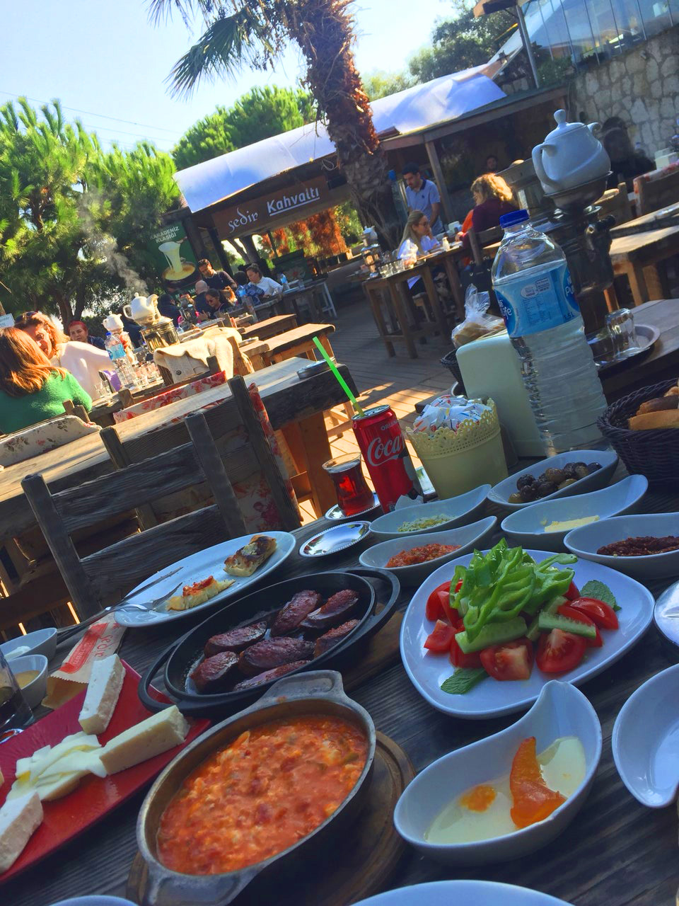Sedir Kahvaltı Çeşme, Çeşme‘nin köklü kahvaltı mekanlarından birisidir. Ilıca‘yı tepeden gören harika manzarası eşliğinde serpme kahvaltı keyfi sürebilirsiniz.